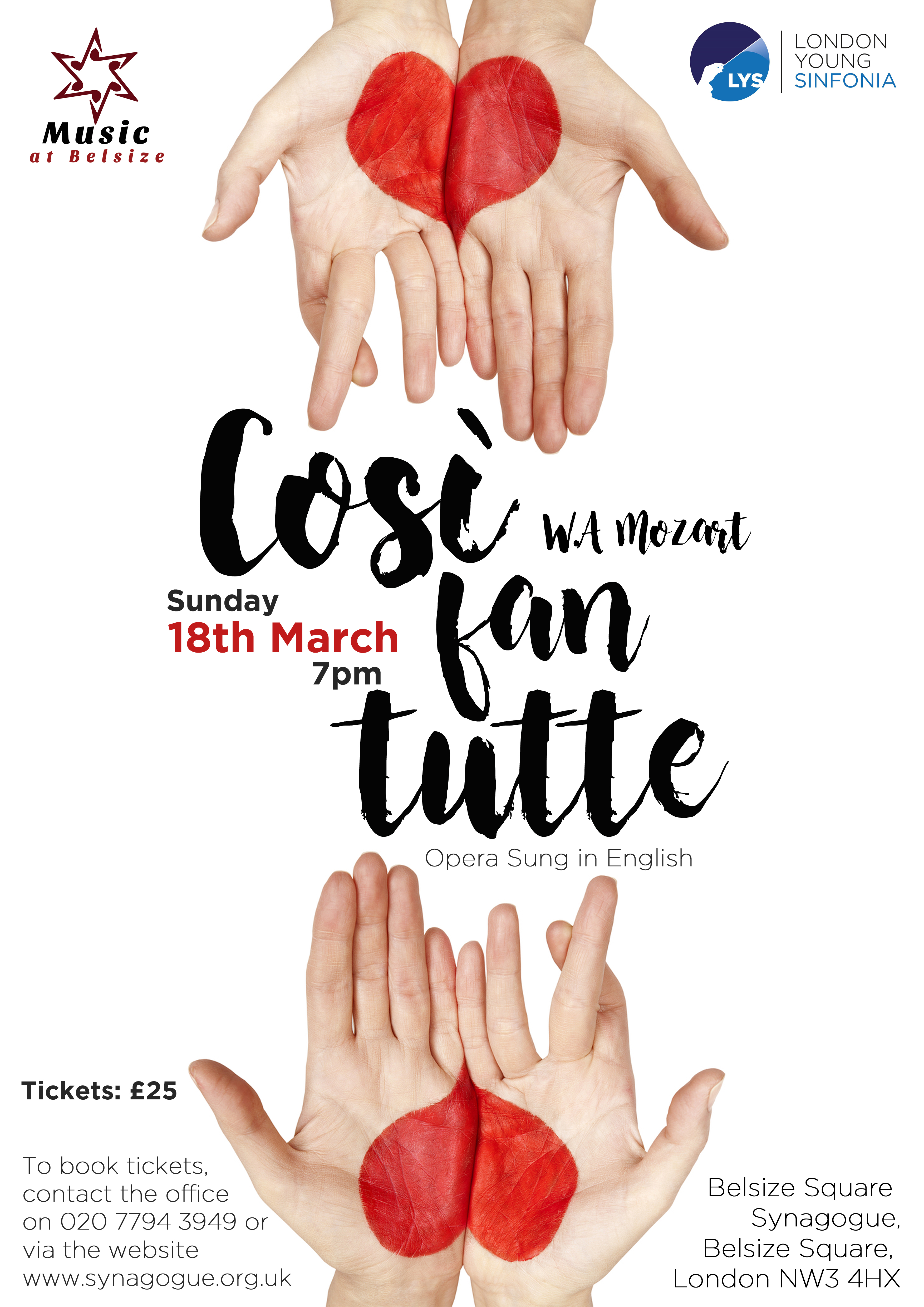 We have a wonderful cast of some of London’s finest young opera singers accompanied by an orchestra of professional musicians in Mozart’s comic masterpiece, Cosi Fan Tutte. This is a production that was first performed at the Waterperry Festival last Summer and we are thrilled that the cast and musicians have accepted an invitation to put on one last performance at Belsize Square.