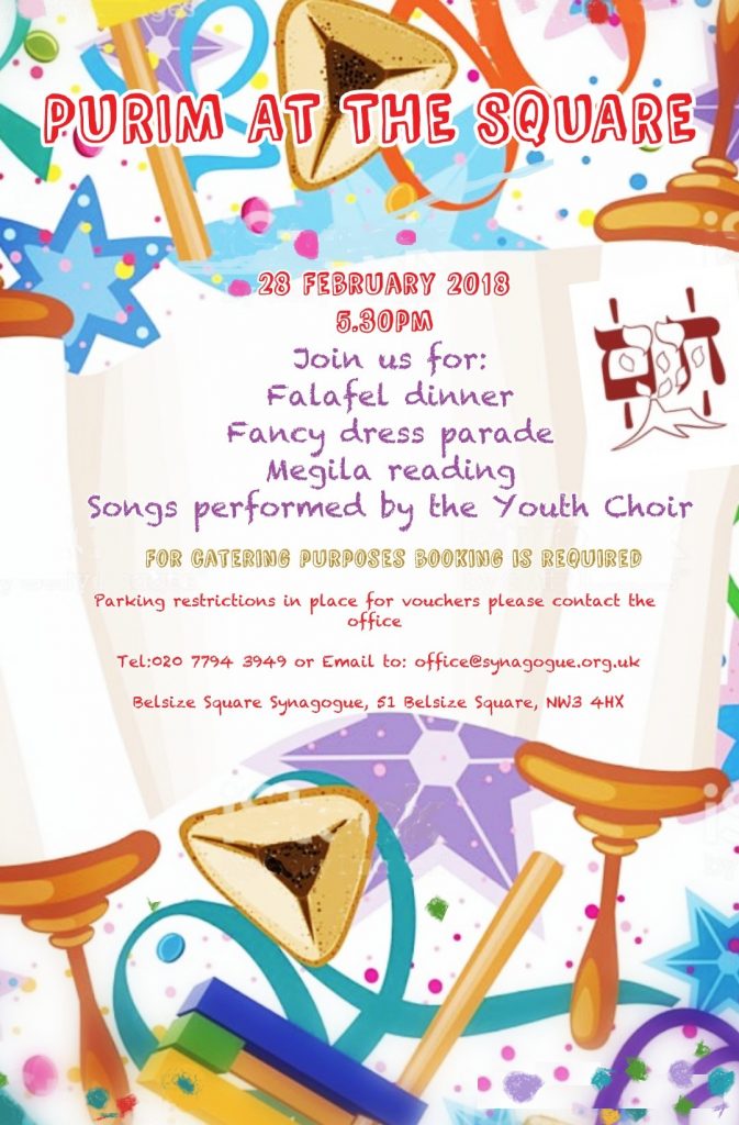 Booking is required for catering purposes. Please contact the Office on 020 7794 3949 or office@synagogue.org.uk
