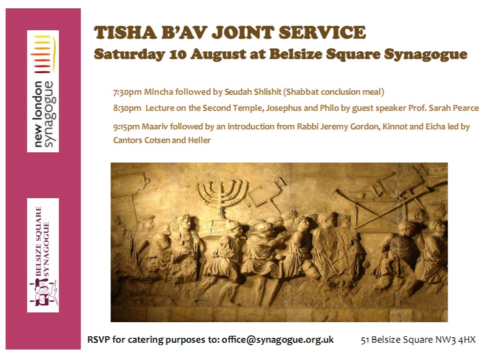 9:15 pm Maariv followed by an introduction from Rabbi Jeremy Gordon, Kinnot and Eicha led by Cantors Cotsen and Heller